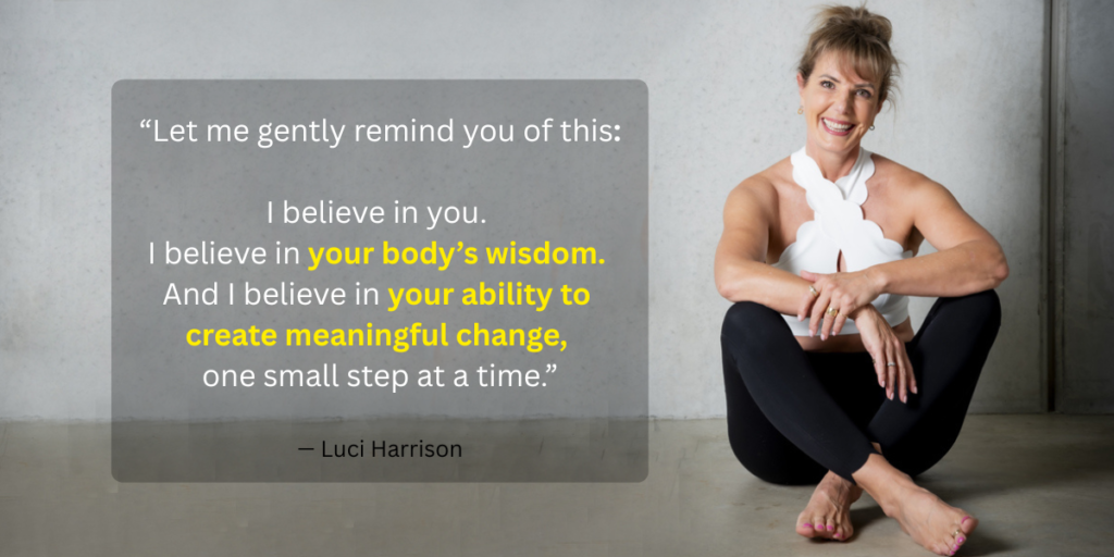 Her work bridges movement, mindset, nourishment, and creative expression, shaped by decades of lived experience and professional practice. Luci is trained as a personal trainer and Pilates instructor, having taught long before reformer studios became mainstream. She is a C.H.E.K Holistic Lifestyle Coach and nutrition-certified educator, known for her integrated, whole-person approach to midlife wellbeing and sustainable vitality.